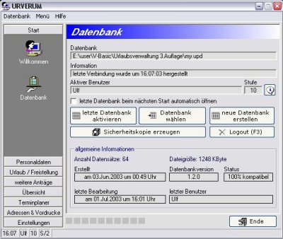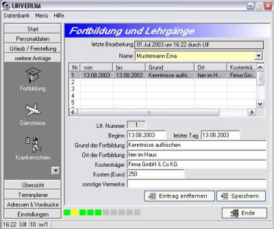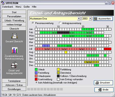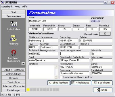 Die Verwaltung mit URVERUM ist denkbar einfach. Sie werden kaum Schwierigkeiten mit der Bedienung habe. So wird z.B. der Datum mit Hilfe eines Menüs eingeben und die benötigten Tagen werden gleich automatisch errechnet. Probieren Sie URVERUM einmal aus und Testen Sie das Programm völlig Kostenlos 30 Tage lang.