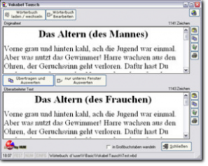 Das Programm tauscht Wörter oder ganze Sätze nach belieben automatisch aus. So können z.B. Fremdwörter umschrieben werden, z.B. "New" in "Neu" oder "PC" in "Personal Computer". Sie geben im Wörterbuch vor, nach welchen Wörtern oder Sätzen gesucht werden soll, wird das Wort oder der Satz exakt im Text gefunden, wird dieser entsprechend ihrer Vorgaben ausgetauscht. Der Text kann auch aus "MS Word" einfach per Kopieren und Einfügen ohne Formatverlust übernommen werden.